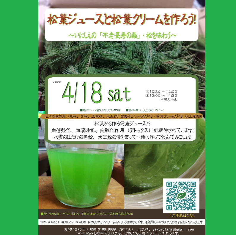 イベントは、松葉ジュースと松葉クリームを作ろう! です。