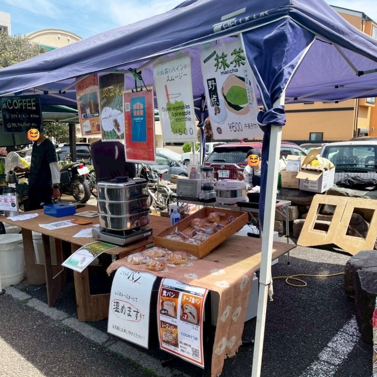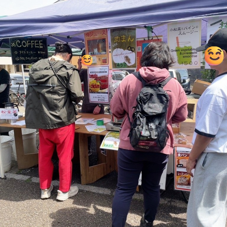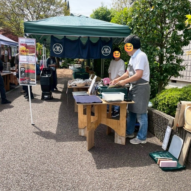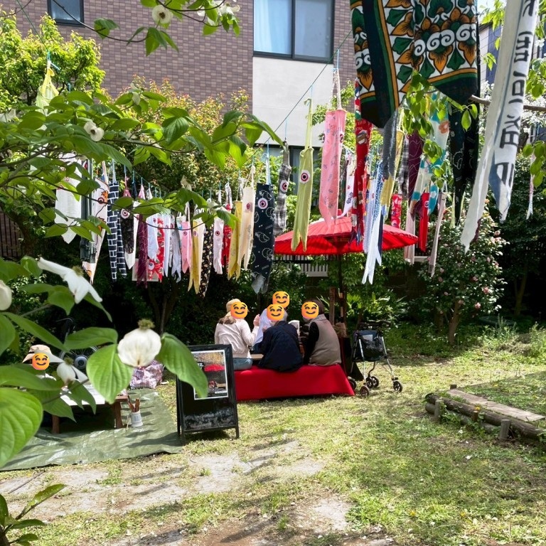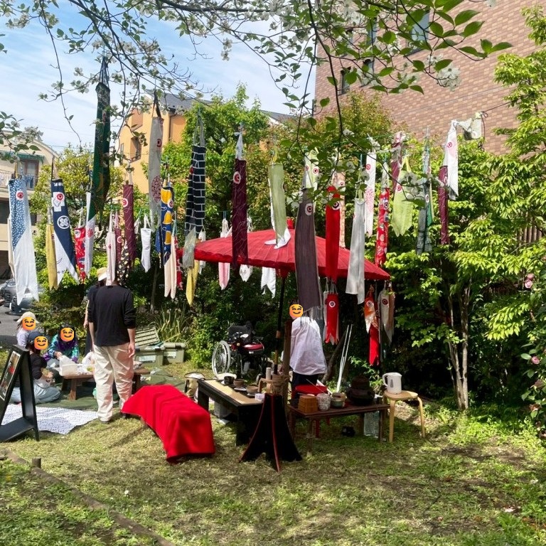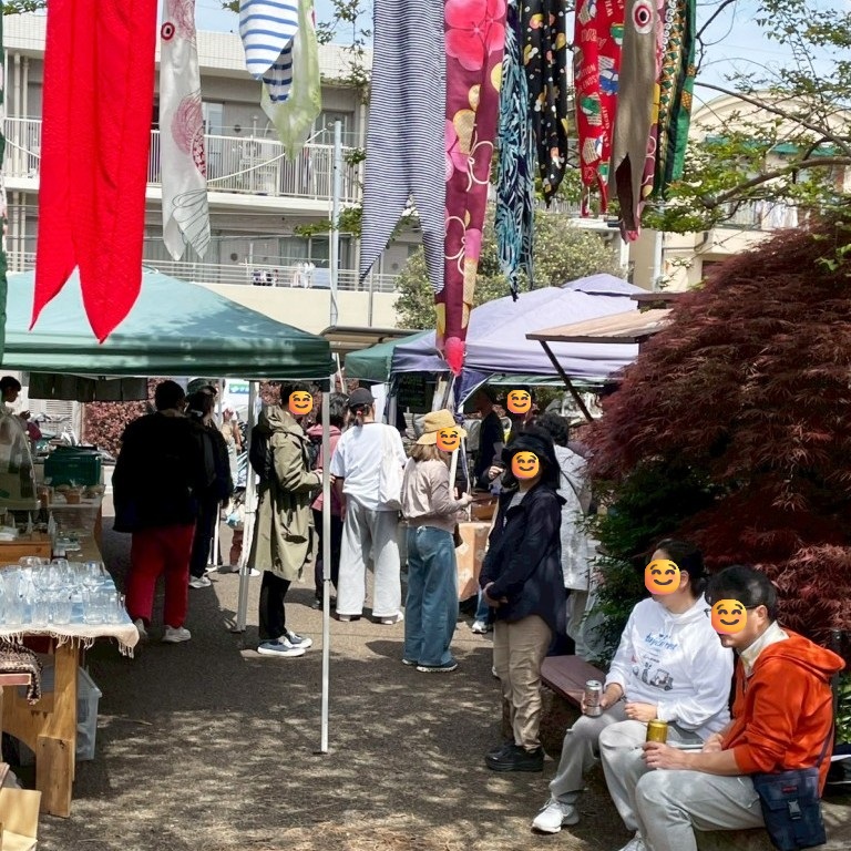 18(土)、マルシェとイベント開催しました!今週末は天気が良くて、絶好のアウトドア日和でしたね。 八雲のはたけには、先週から鯉のぼりを飾っています。貸し農園の入口と、下の広場の周囲、合わせて240匹!近くに住んでいる方々で、着なくなった和服・洋服を仕立て直して作った手作り鯉のぼりです。1か月くらい飾っていますので、期間中お楽しみください。 マルシェ開催日に合わせて、広場の一角で、お子様向けに自由にお絵かきできるスペースを設けています。こちらも有志の方々でやってもらっています。春の間は開催する予定です。